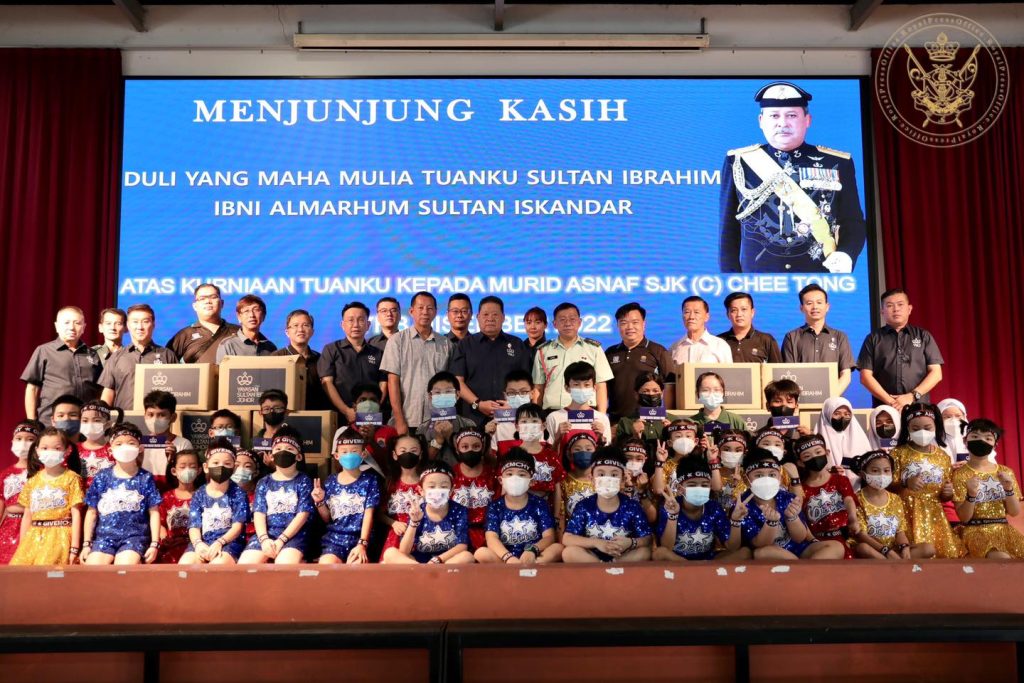 Seramai 300 murid golongan B40 berbilang agama dan bangsa dari SJK (C) Chee Tong, Masai menerima kurniaan bantuan makanan daripada DYMM Sultan Johor, Sultan Ibrahim